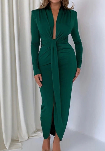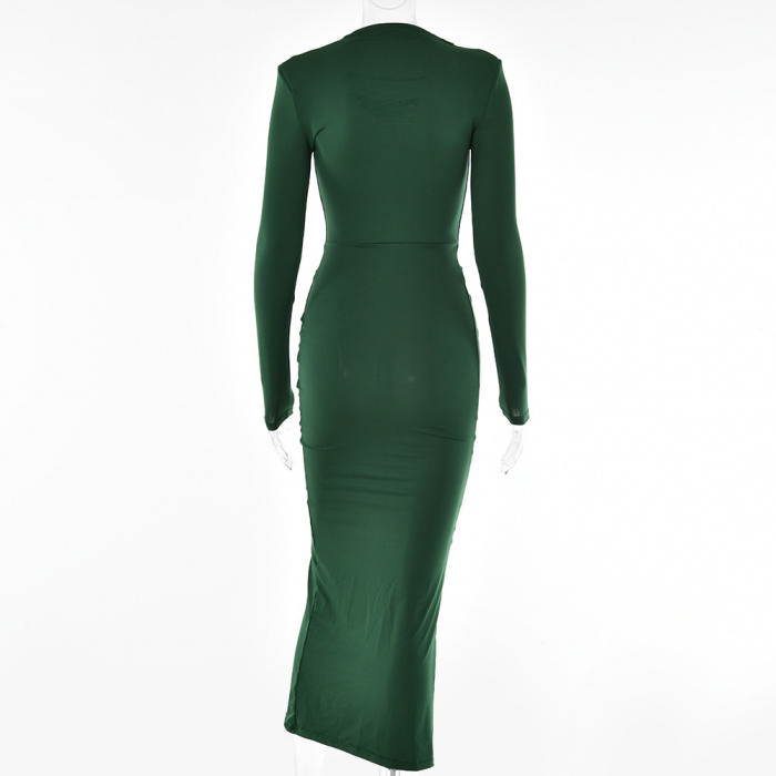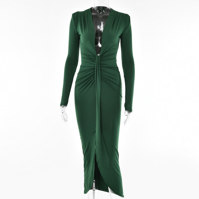 (Real Image)2023 Styles Women Sexy&Fashion Autumn/Winter TikTok&Instagram Styles V Neck Long Sleeve Maxi DressSKU: #XF62617-2