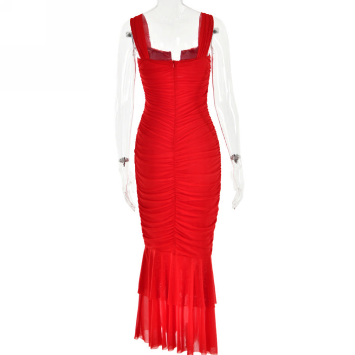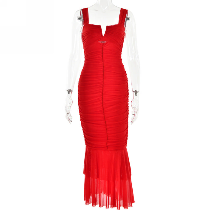 (Real Image)2023 Styles Women Sexy&Fashion Autumn/Winter TikTok&Instagram Styles V Neck Mesh Maxi DressSKU: #XF62613-5