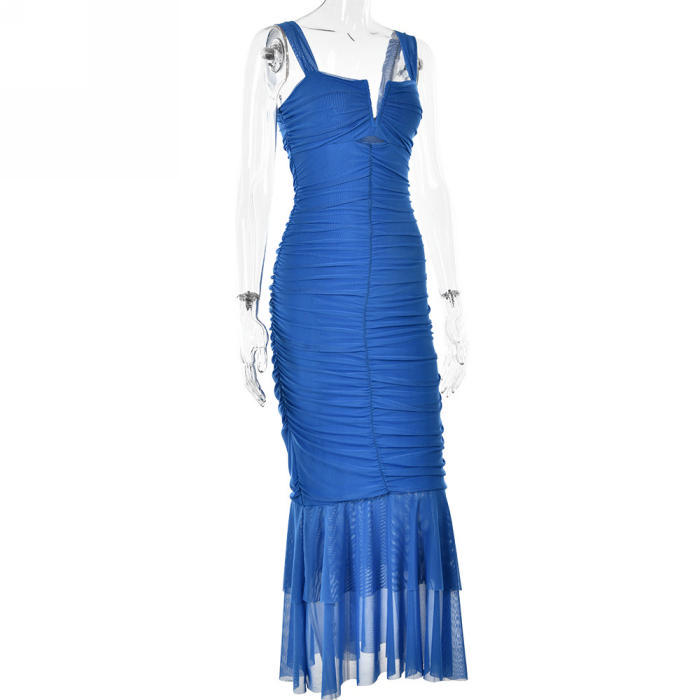 (Real Image)2023 Styles Women Sexy&Fashion Autumn/Winter TikTok&Instagram Styles V Neck Mesh Maxi DressSKU: #XF62613-2