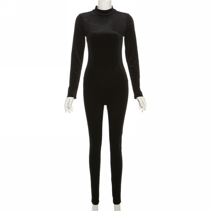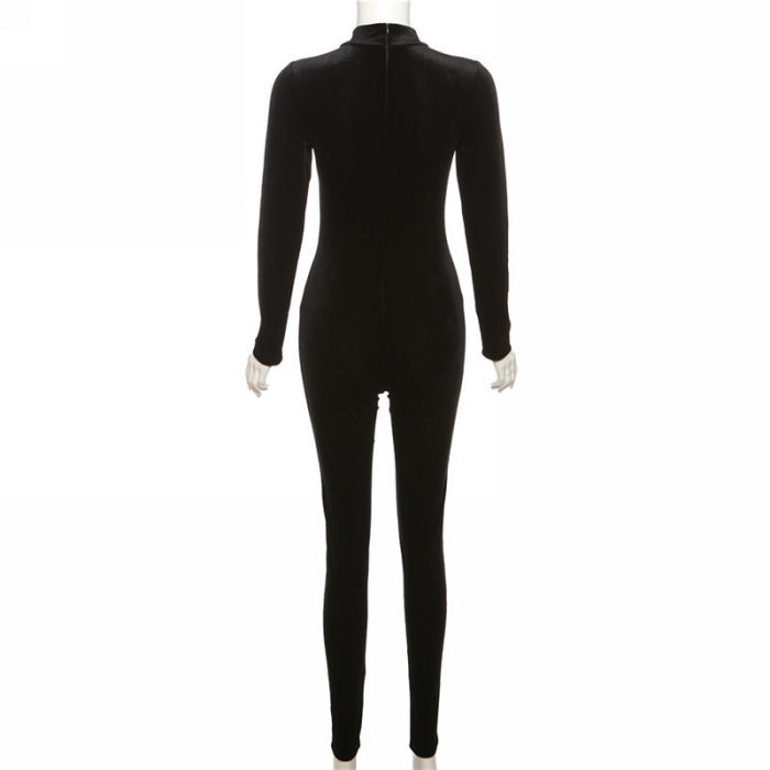 (Real Image)2023 Styles Women Sexy&Fashion Autumn/Winter TikTok&Instagram Styles Velvet Black Long Sleeve JumpsuitSKU: #CF77638-1