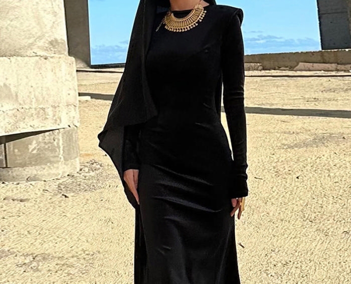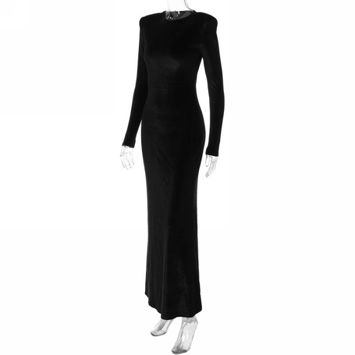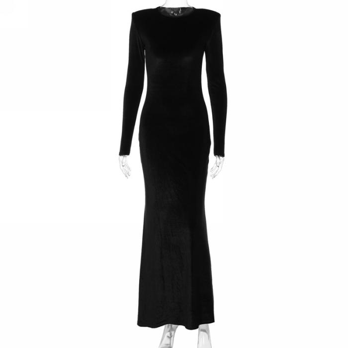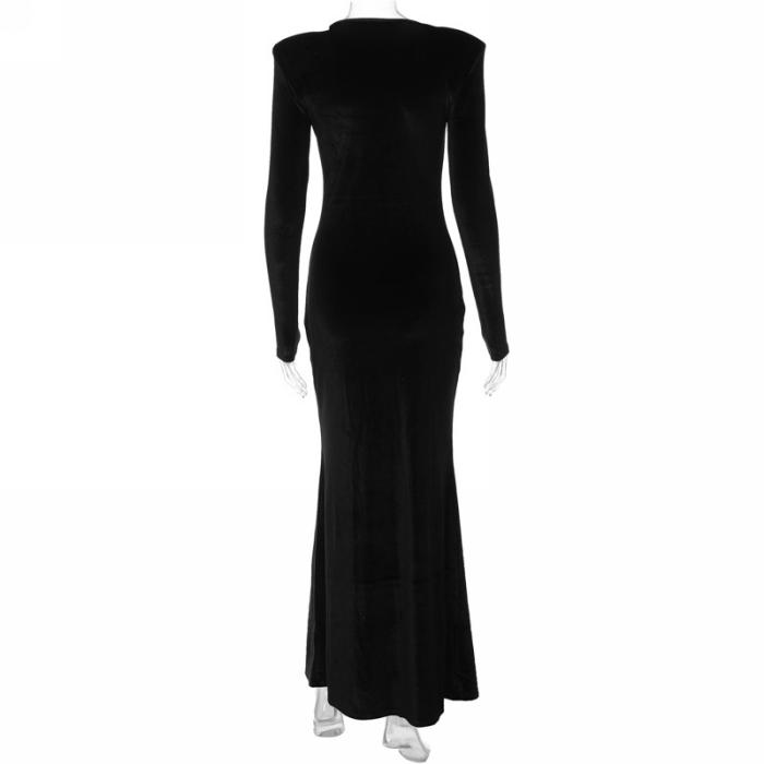(Real Image)2023 Styles Women Sexy&Fashion Autumn/Winter TikTok&Instagram Styles Velvet Black Long Sleeve Maxi DressSKU: #CF88162-1