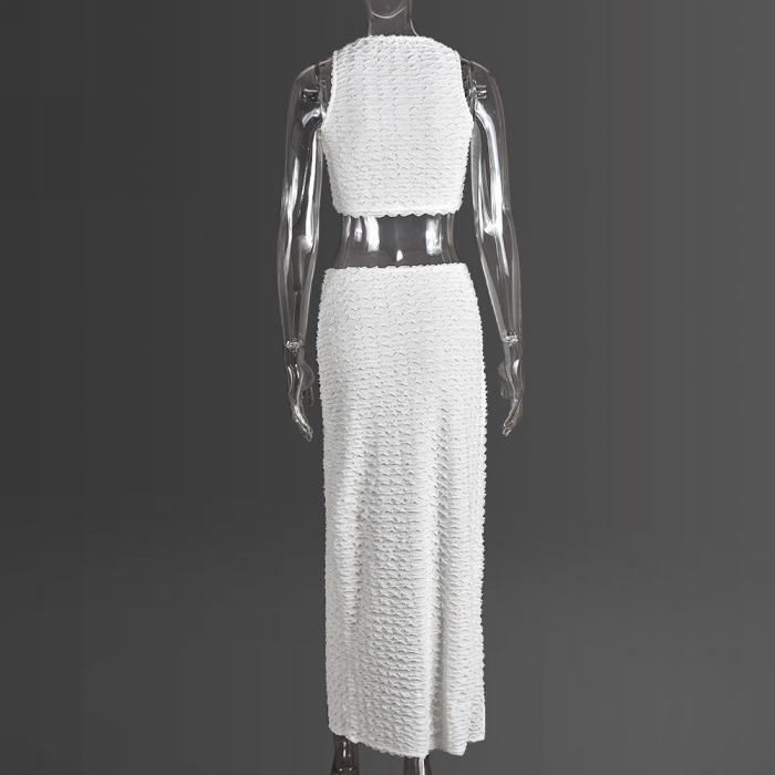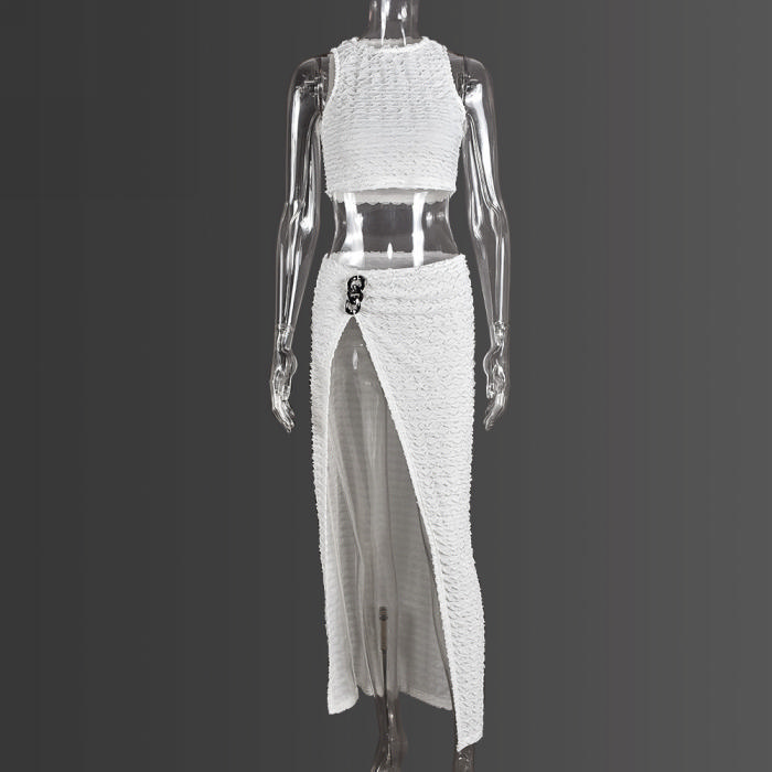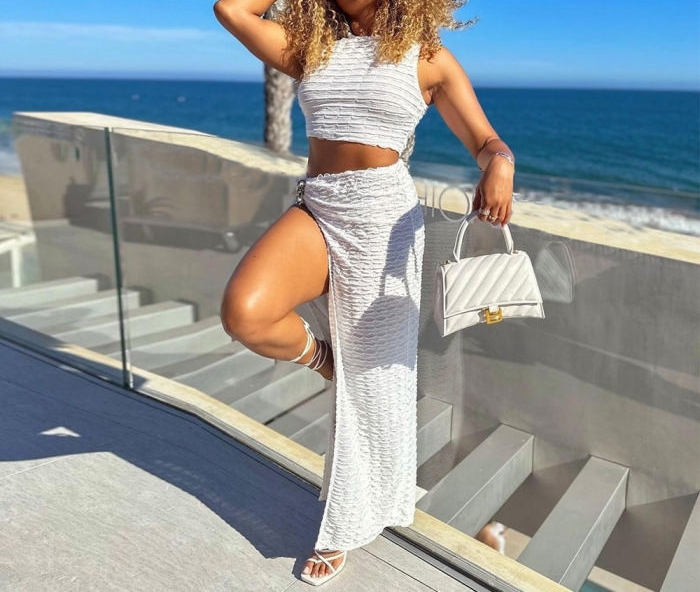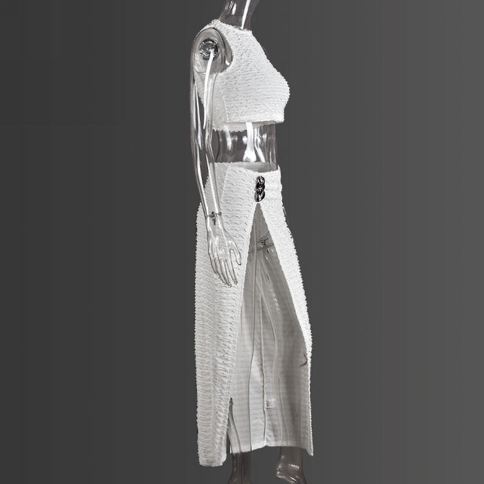 (Real Image)2023 Styles Women Sexy&Fashion Autumn/Winter TikTok&Instagram Styles White High Split Maxi DressSKU: #CF59771-1