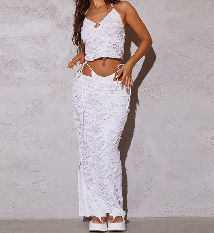 (Real Image)2023 Styles Women Sexy&Fashion Autumn/Winter TikTok&Instagram Styles White Ripped Maxi DressSKU: #CF59788-1