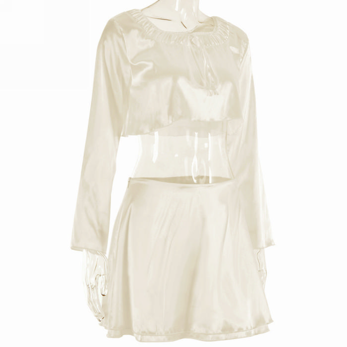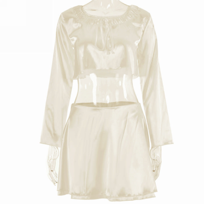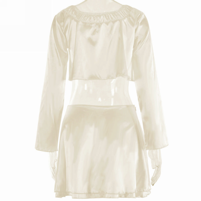 (Real Image)2023 Styles Women Sexy&Fashion Autumn/Winter TikTok&Instagram Styles White Silk Two Piece DressSKU: #XF62638-1