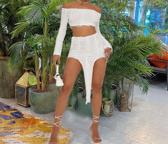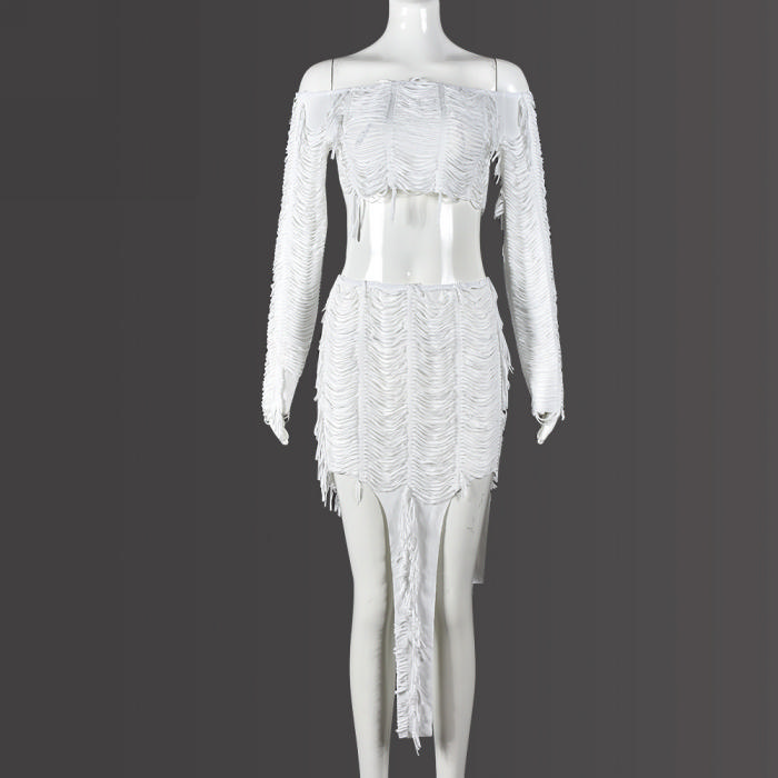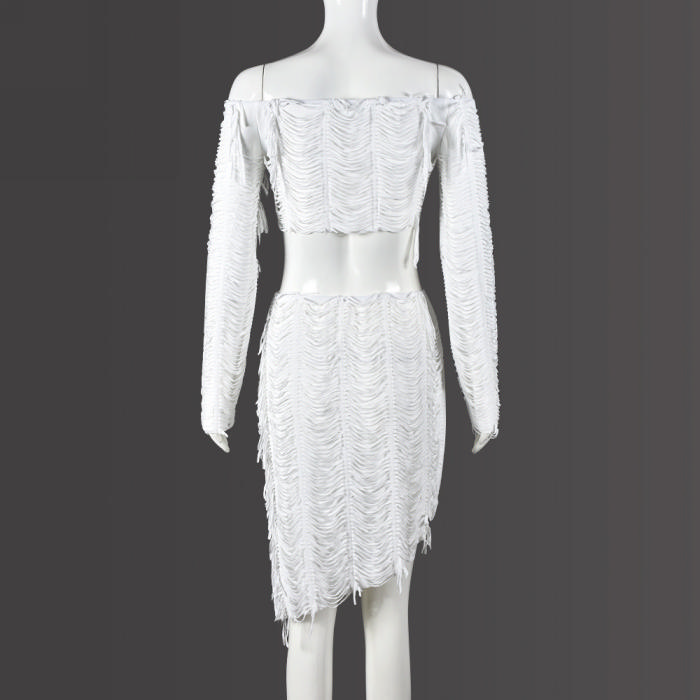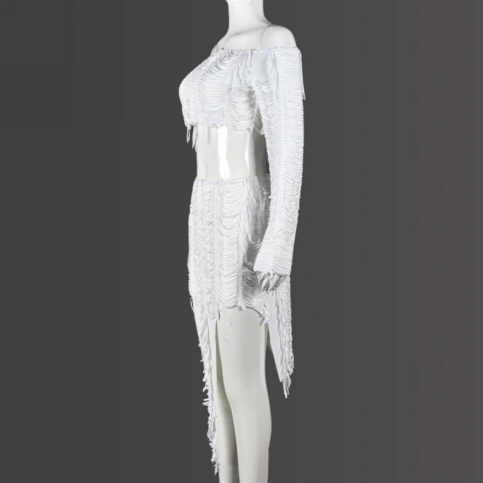 (Real Image)2023 Styles Women Sexy&Fashion Autumn/Winter TikTok&Instagram Styles White Tassel Two Piece DressSKU: #CF59786-1