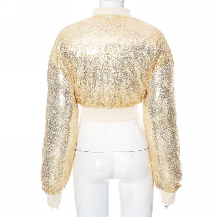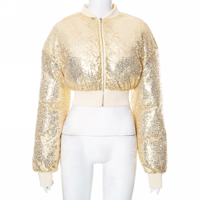 (Real Image)2023 Styles Women Sexy&Fashion Autumn/Winter TikTok&Instagram Styles Yellow Sequins Front Zipper CoatSKU: #CF47753-1