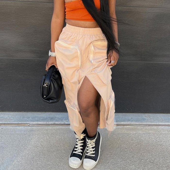 (Real Image)2023 Styles Women Sexy&Fashion Spring&Summer TikTok&Instagram Styles Apricot Loose SkirtsSKU: #CF59443-1