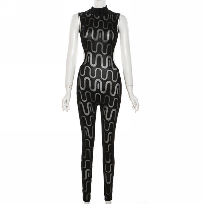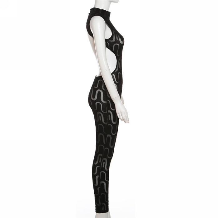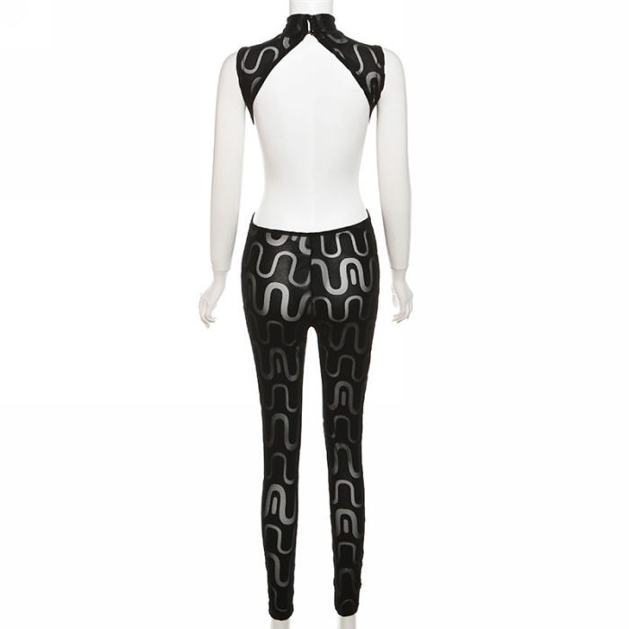 (Real Image)2023 Styles Women Sexy&Fashion Spring&Summer TikTok&Instagram Styles Backless Black Print JumpsuitSKU: #CF77602-1