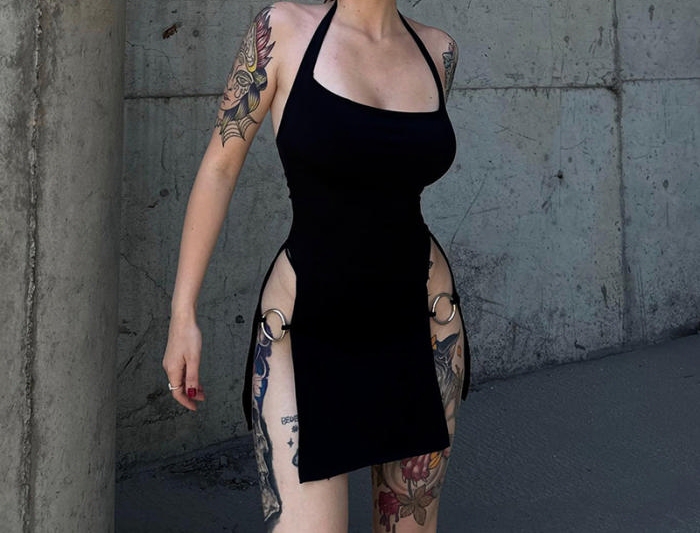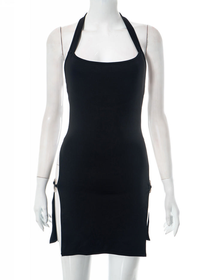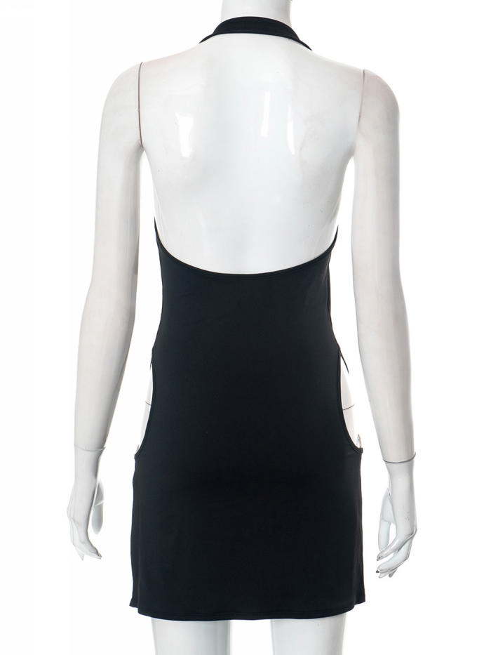 (Real Image)2023 Styles Women Sexy&Fashion Spring&Summer TikTok&Instagram Styles Backless Black Strap Mini DressSKU: #CF76110-1