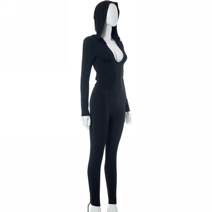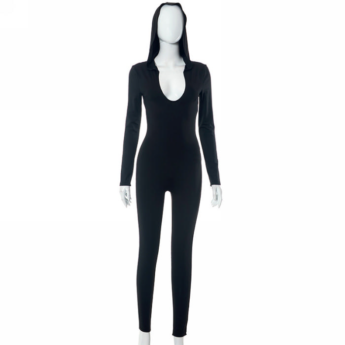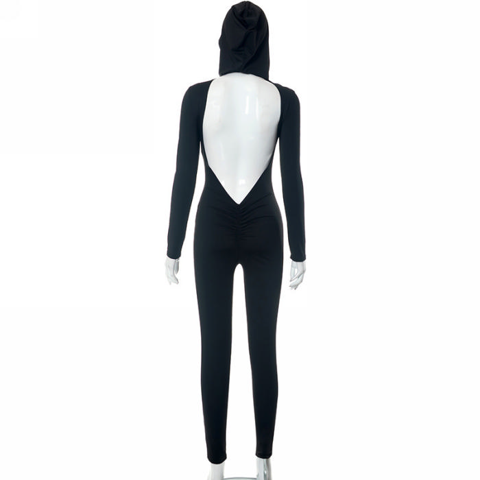 (Real Image)2023 Styles Women Sexy&Fashion Spring&Summer TikTok&Instagram Styles Backless Hoodie Long Sleeve JumpsuitSKU: #CF47689-1