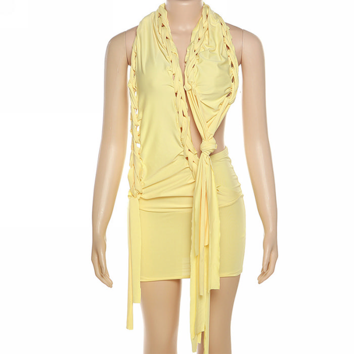 (Real Image)2023 Styles Women Sexy&Fashion Spring&Summer TikTok&Instagram Styles Backless Lace Up Club DressSKU: #CF83119-1