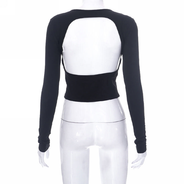 (Real Image)2023 Styles Women Sexy&Fashion Spring&Summer TikTok&Instagram Styles Backless Long Sleeve TeeSKU: #CF68273-1