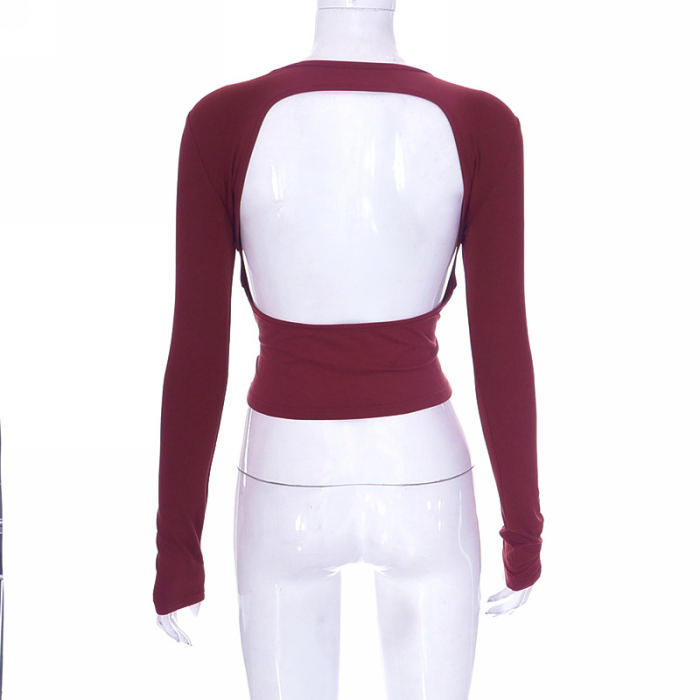 (Real Image)2023 Styles Women Sexy&Fashion Spring&Summer TikTok&Instagram Styles Backless Long Sleeve TeeSKU: #CF68273-3