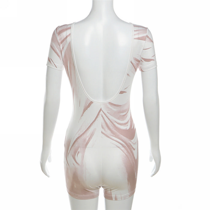 (Real Image)2023 Styles Women Sexy&Fashion Spring&Summer TikTok&Instagram Styles Backless Print RomperSKU: #CF77455-1