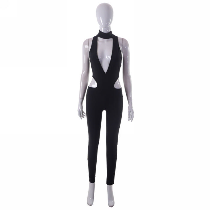 (Real Image)2023 Styles Women Sexy&Fashion Spring&Summer TikTok&Instagram Styles Black Cut Out JumpsuitSKU: #CF47452-1