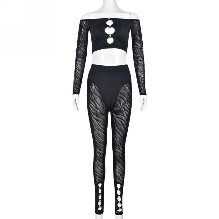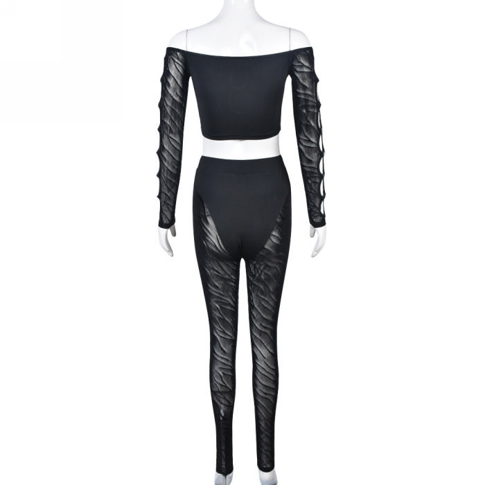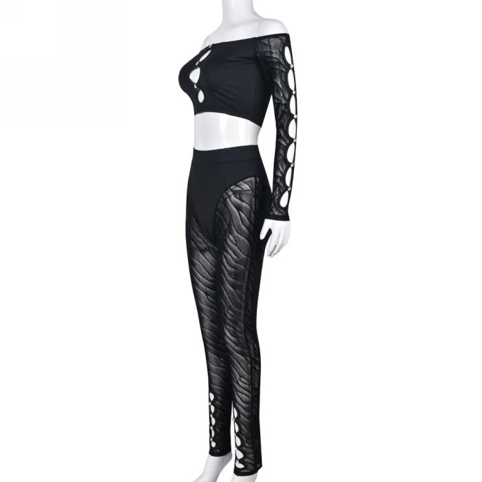 (Real Image)2023 Styles Women Sexy&Fashion Spring&Summer TikTok&Instagram Styles Black Cut Out Lace Two Piece SuitSKU: #CF59414-1