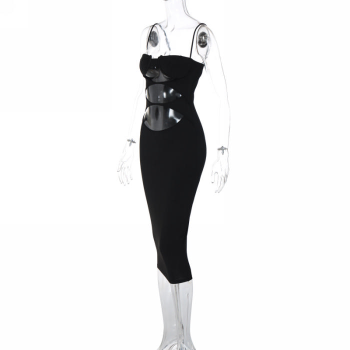 (Real Image)2023 Styles Women Sexy&Fashion Spring&Summer TikTok&Instagram Styles Black Cut Out Maxi DressSKU: #CF38210-1