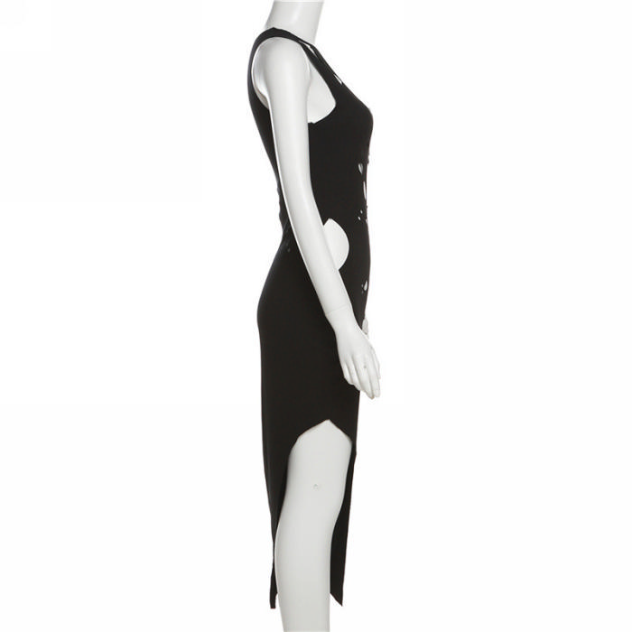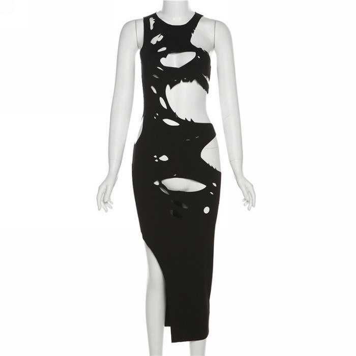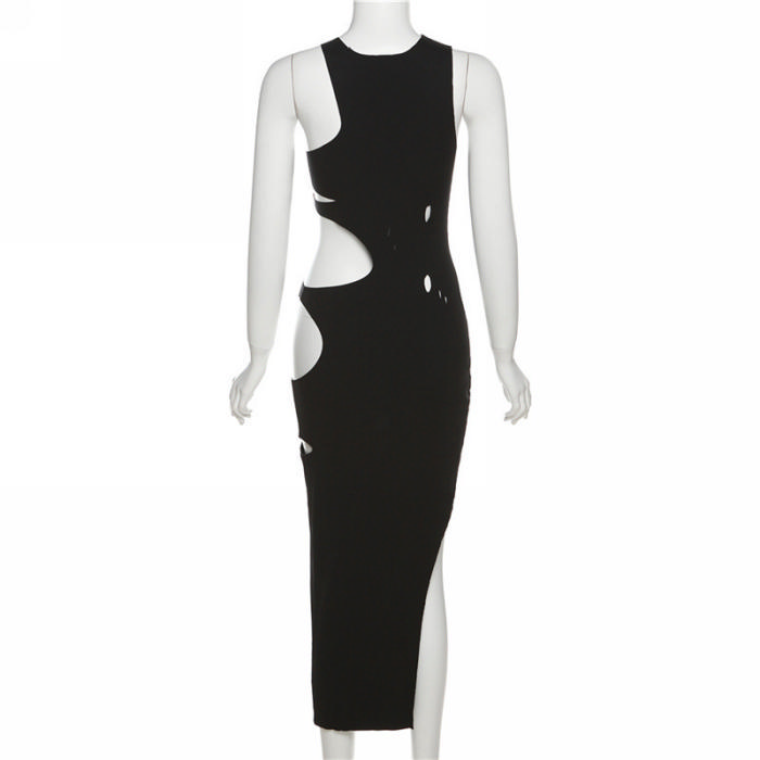 (Real Image)2023 Styles Women Sexy&Fashion Spring&Summer TikTok&Instagram Styles Black Cut Out Maxi DressSKU: #CF77341-1