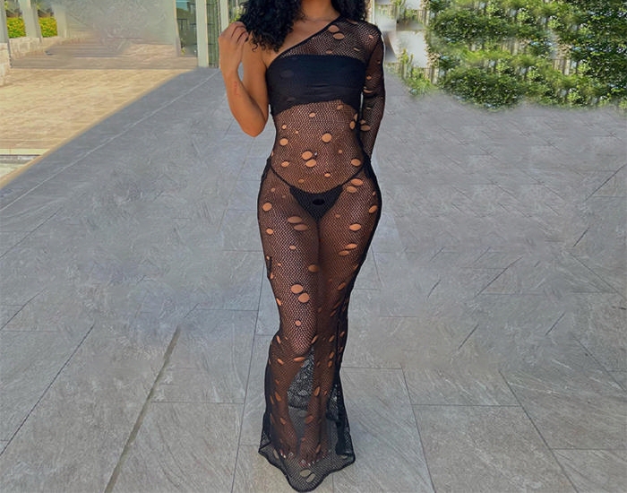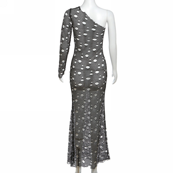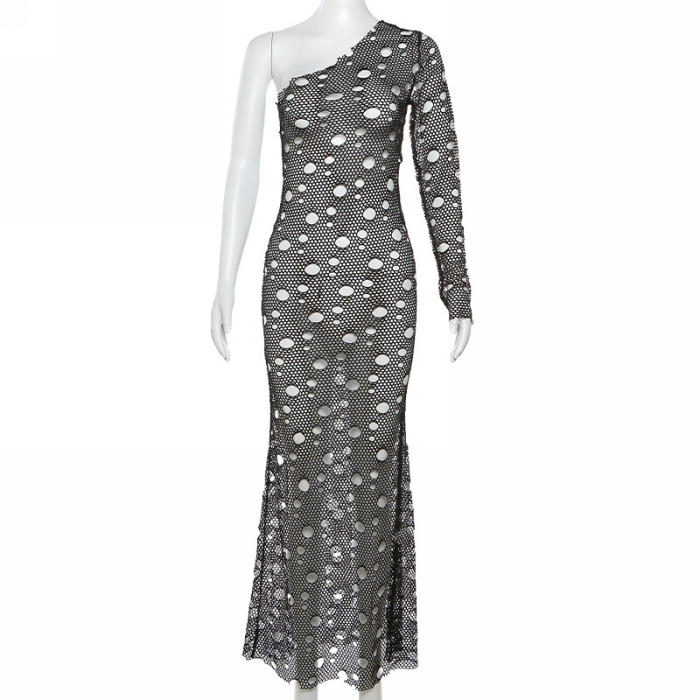 (Real Image)2023 Styles Women Sexy&Fashion Spring&Summer TikTok&Instagram Styles Black Cut Out Single Shoulder Maxi DressSKU: #CF83170-1