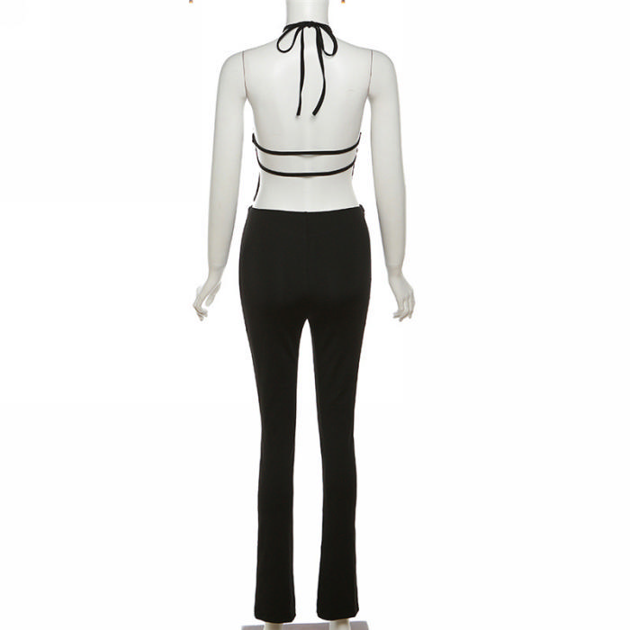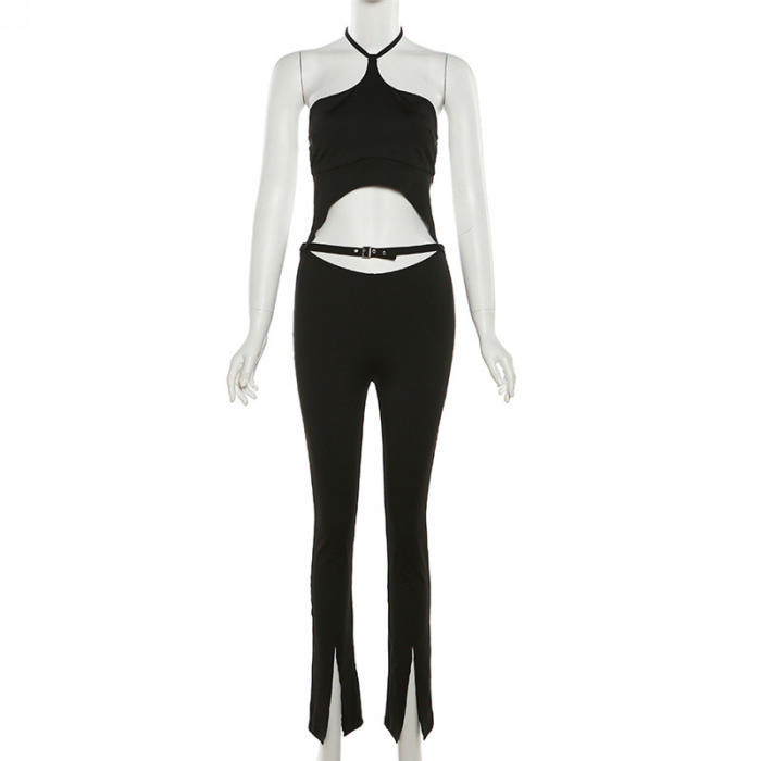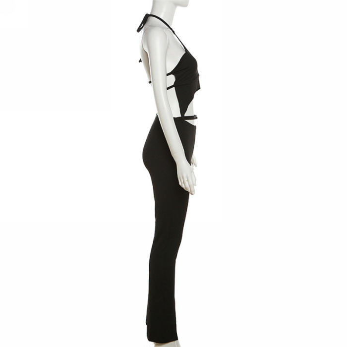 (Real Image)2023 Styles Women Sexy&Fashion Spring&Summer TikTok&Instagram Styles Black Cut Out Two Piece SuitSKU: #CF77443-1