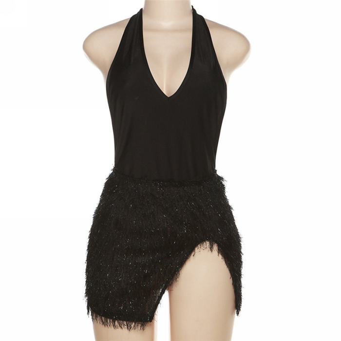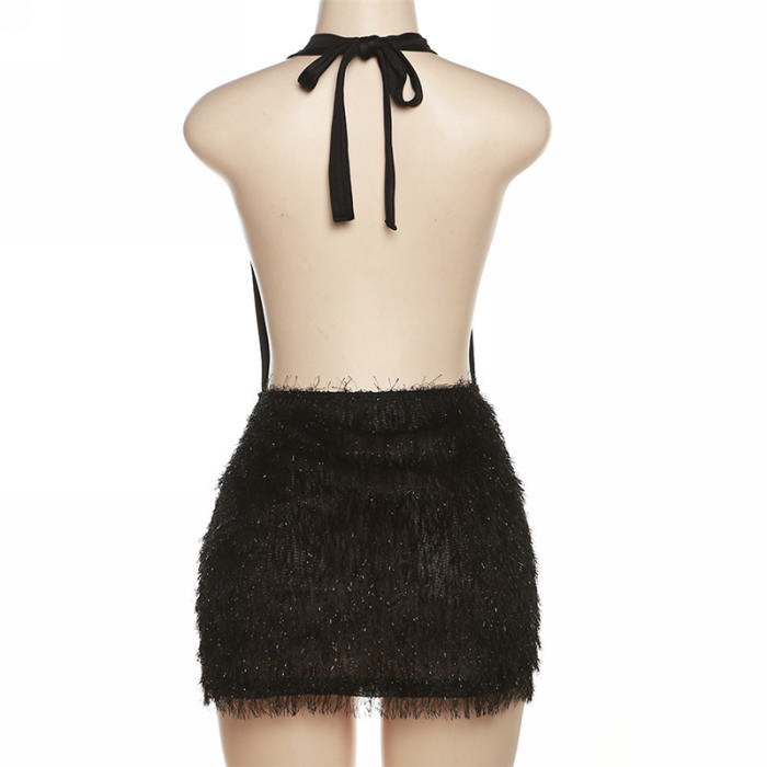 (Real Image)2023 Styles Women Sexy&Fashion Spring&Summer TikTok&Instagram Styles Black Halter Club DressSKU: #CF47608-1