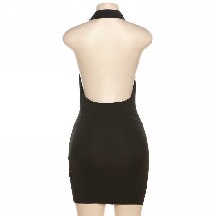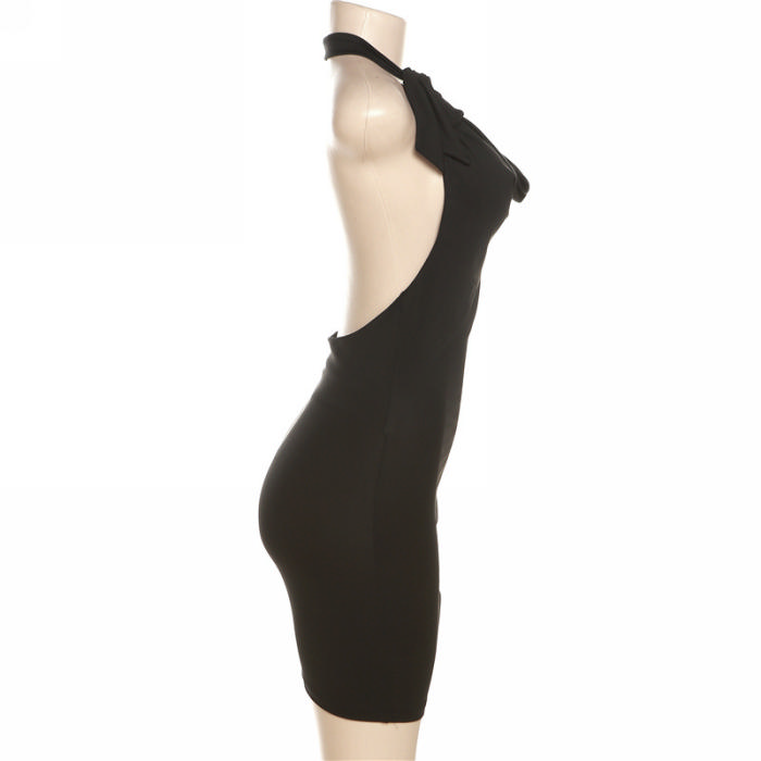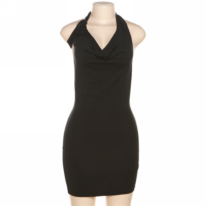 (Real Image)2023 Styles Women Sexy&Fashion Spring&Summer TikTok&Instagram Styles Black Halter Clung DressSKU: #CF83120-1