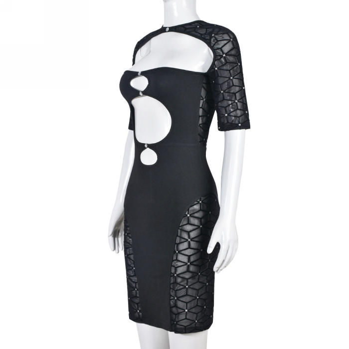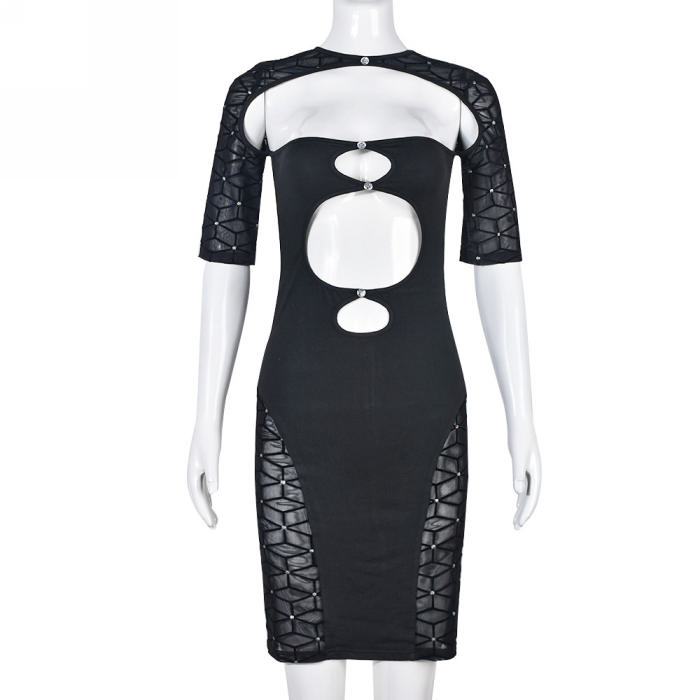 (Real Image)2023 Styles Women Sexy&Fashion Spring&Summer TikTok&Instagram Styles Black Lace Cut Out Midi DressSKU: #CF59428-1