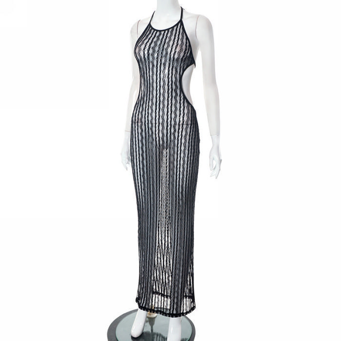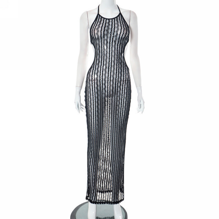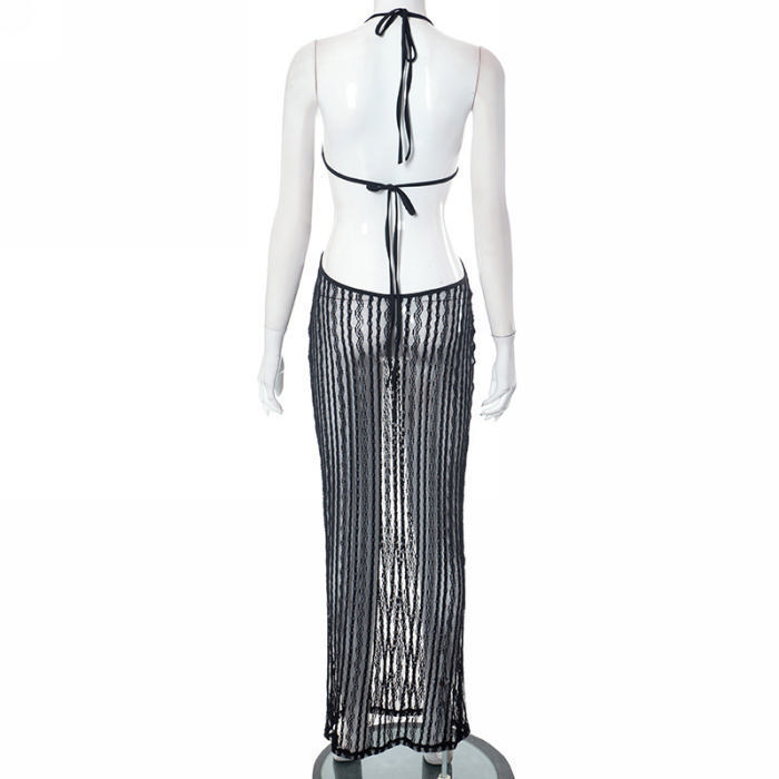 (Real Image)2023 Styles Women Sexy&Fashion Spring&Summer TikTok&Instagram Styles Black Lace Halter Backless Maxi DressSKU: #CF80083-1