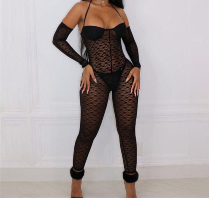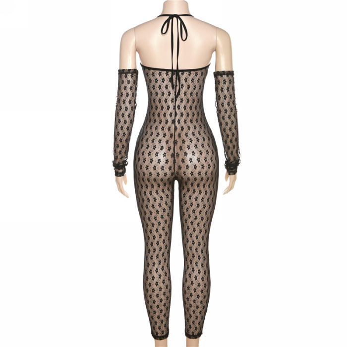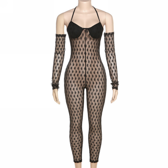 (Real Image)2023 Styles Women Sexy&Fashion Spring&Summer TikTok&Instagram Styles Black Lace JumpsuitSKU: #CF77363-1