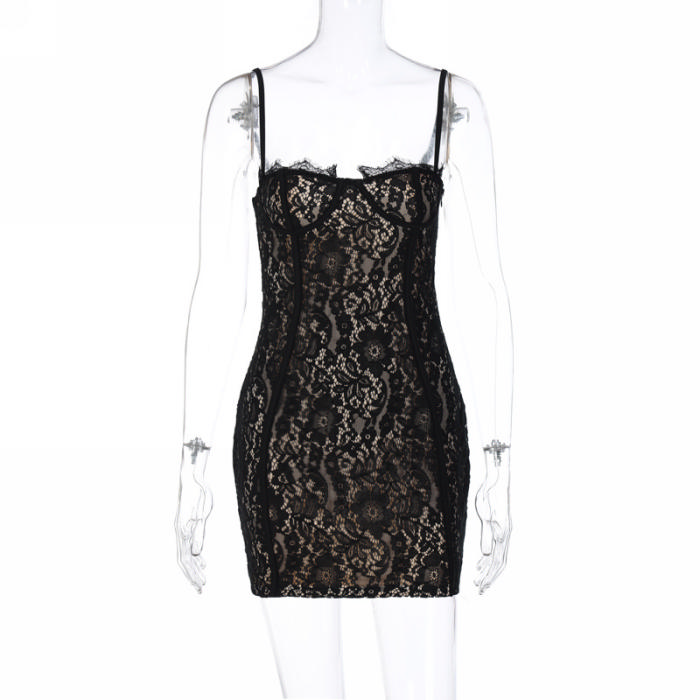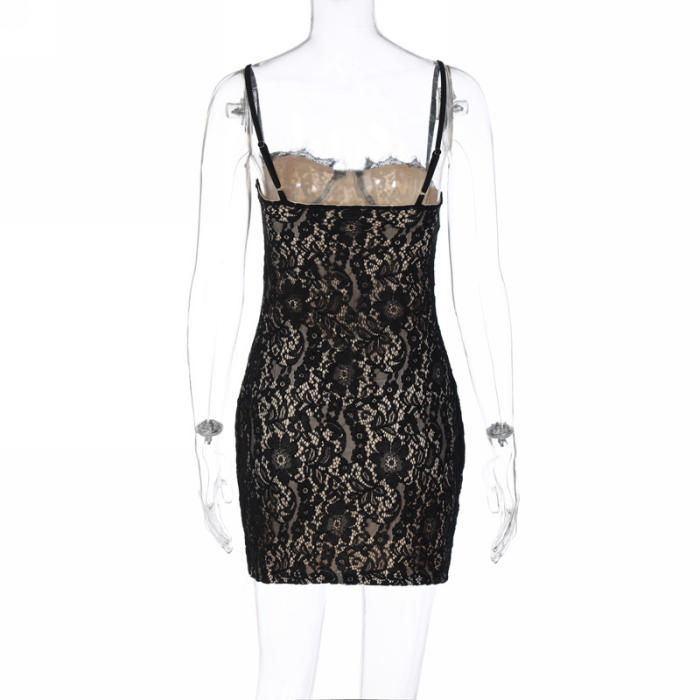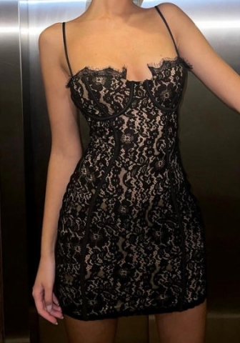 (Real Image)2023 Styles Women Sexy&Fashion Spring&Summer TikTok&Instagram Styles Black Lace Mini DressSKU: #CF88016-1