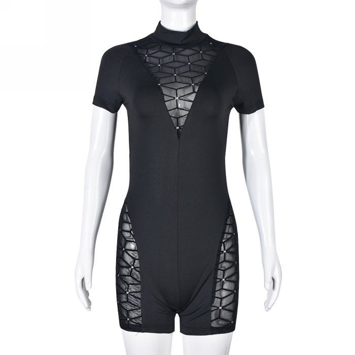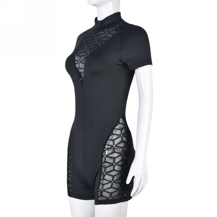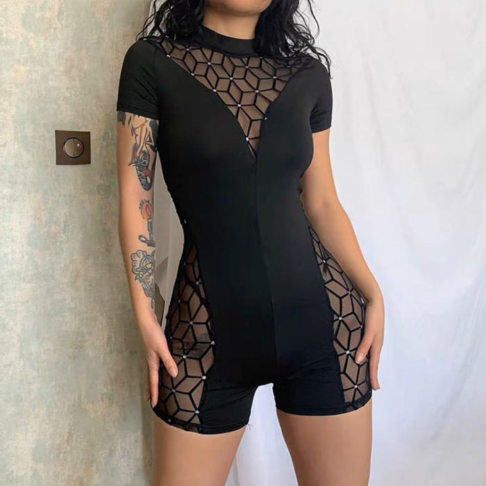 (Real Image)2023 Styles Women Sexy&Fashion Spring&Summer TikTok&Instagram Styles Black Lace Short Sleeve RomperSKU: #CF59417-1