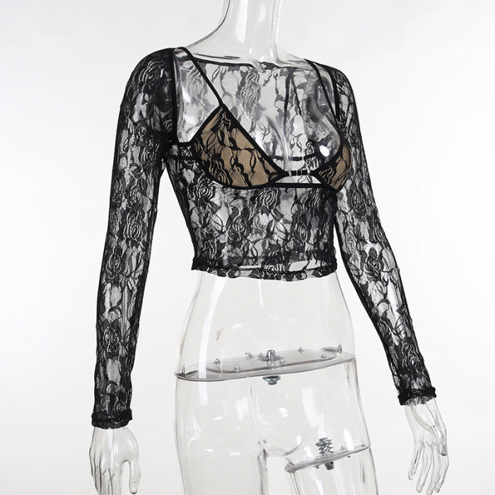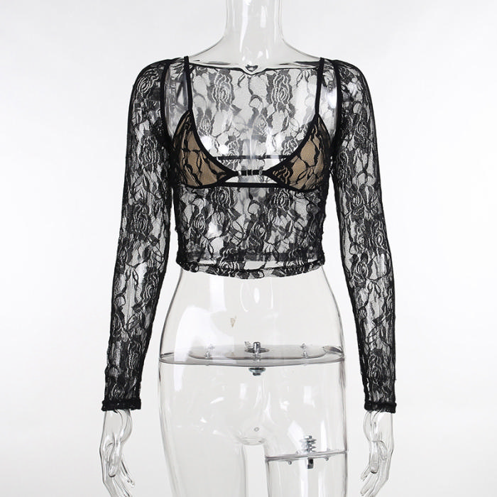 (Real Image)2023 Styles Women Sexy&Fashion Spring&Summer TikTok&Instagram Styles Black Lace TopsSKU: #XF92772-1