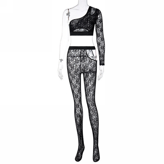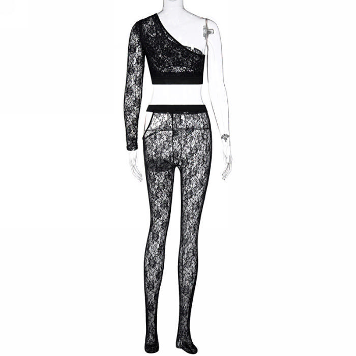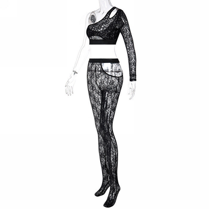 (Real Image)2023 Styles Women Sexy&Fashion Spring&Summer TikTok&Instagram Styles Black Lace Two Piece SuitSKU: #TP038-1