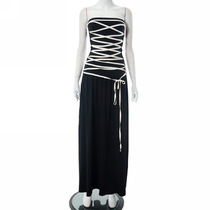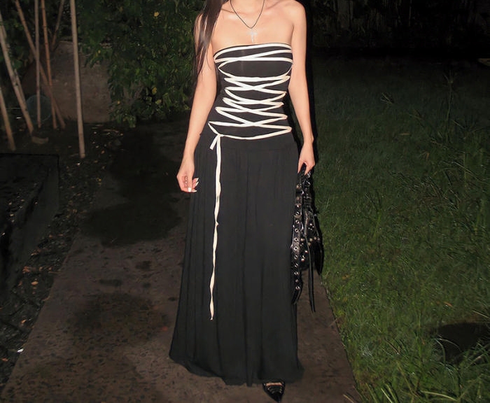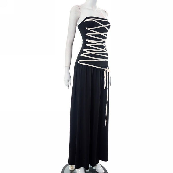 (Real Image)2023 Styles Women Sexy&Fashion Spring&Summer TikTok&Instagram Styles Black Lace Up Maxi DressSKU: #CF76077-1