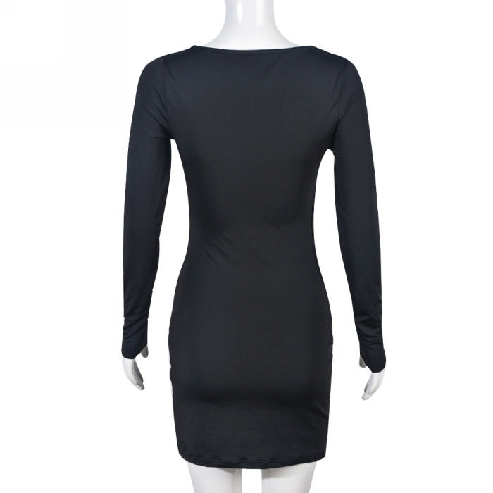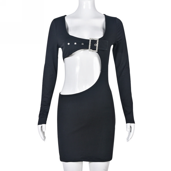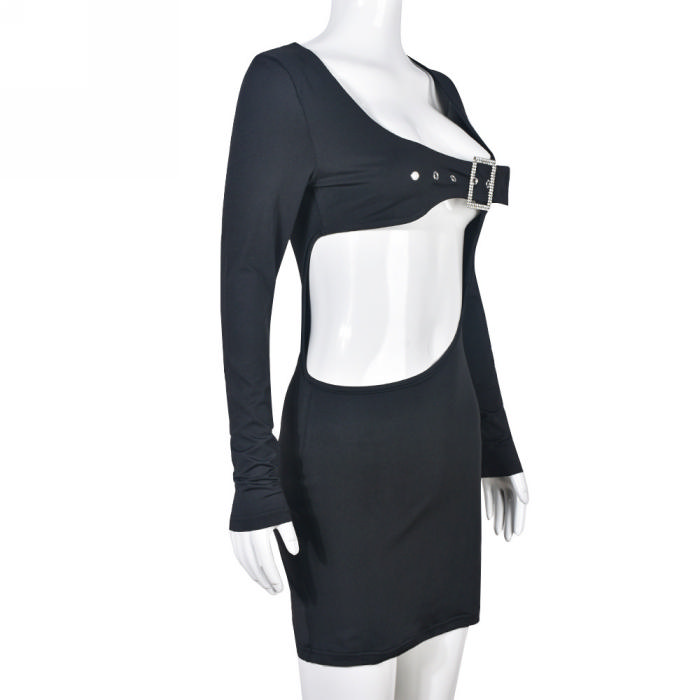 (Real Image)2023 Styles Women Sexy&Fashion Spring&Summer TikTok&Instagram Styles Black Long Sleeve Irregular Club DressSKU: #CF59433-1