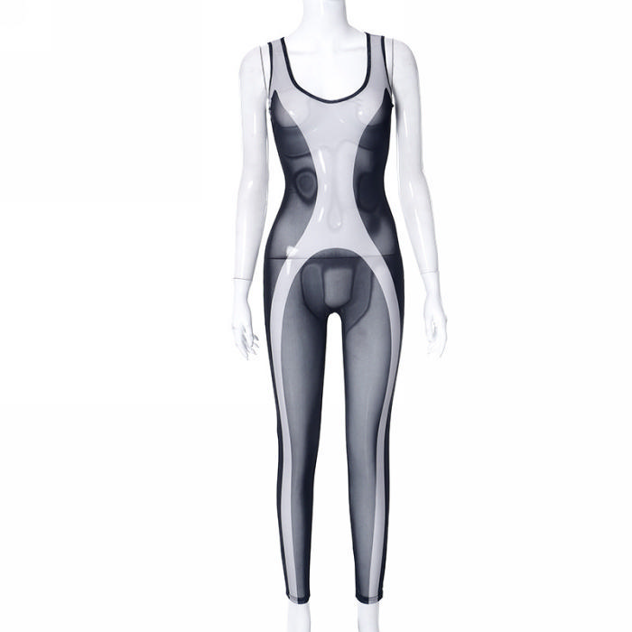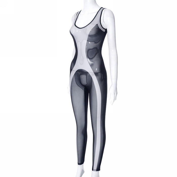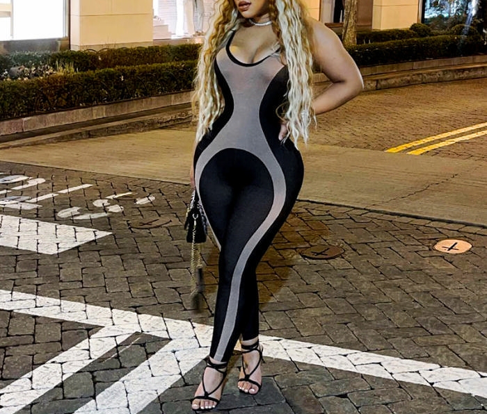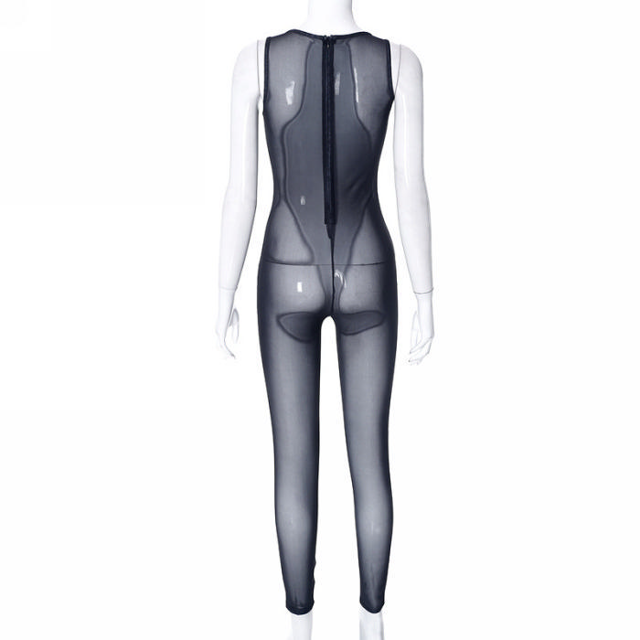 (Real Image)2023 Styles Women Sexy&Fashion Spring&Summer TikTok&Instagram Styles Black Mesh JumpsuitSKU: #CF47505-1