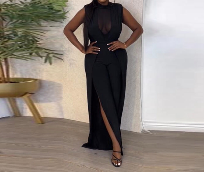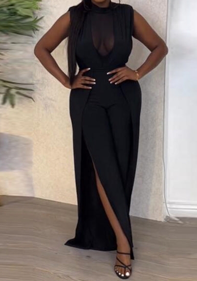 (Real Image)2023 Styles Women Sexy&Fashion Spring&Summer TikTok&Instagram Styles Black Mesh JumpsuitSKU: #XF27394-1