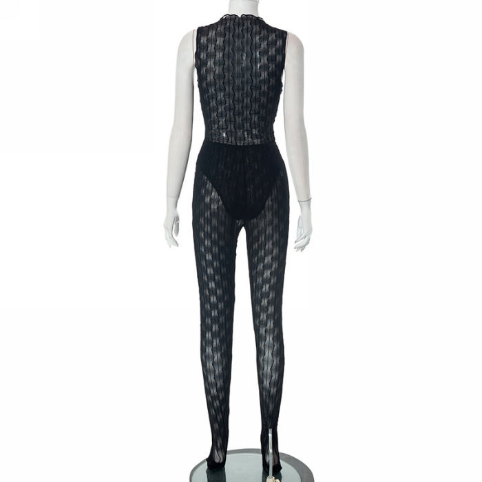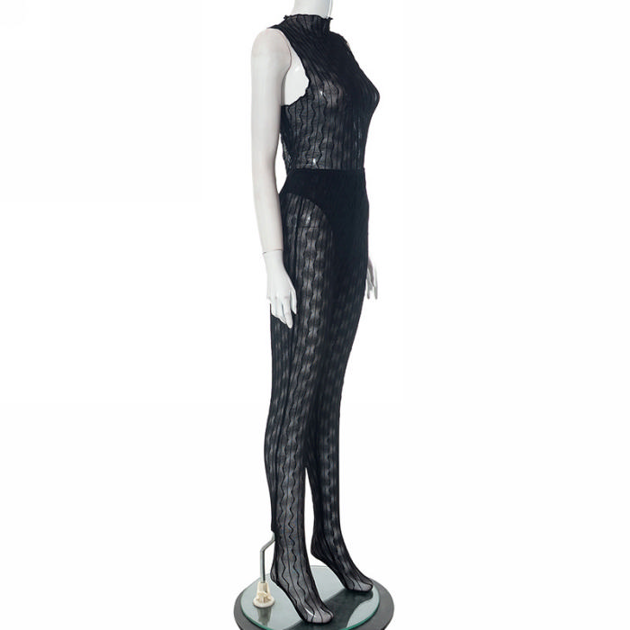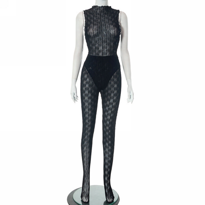 (Real Image)2023 Styles Women Sexy&Fashion Spring&Summer TikTok&Instagram Styles Black Mesh JumpsuitSKU: #CF47672-1