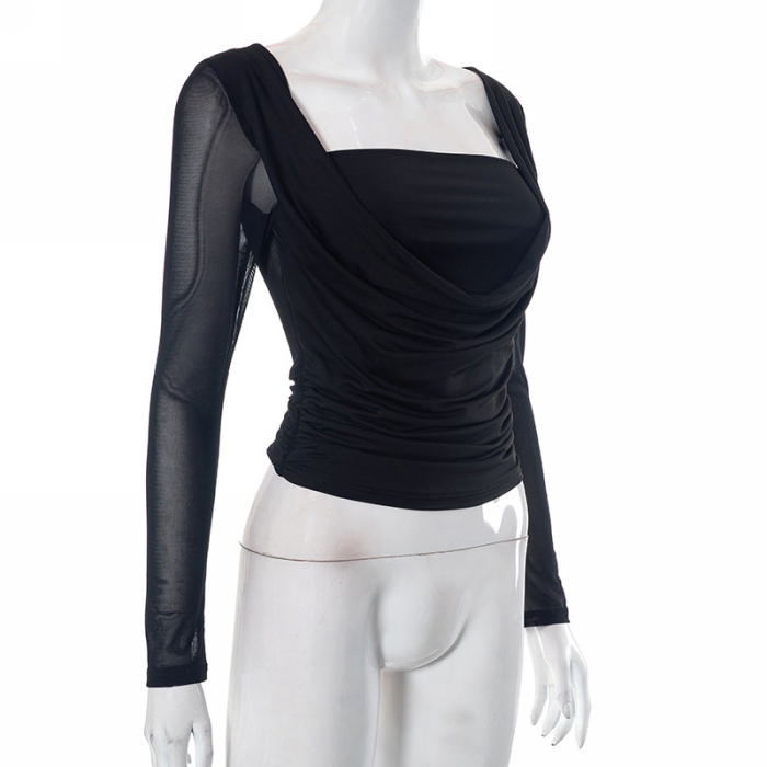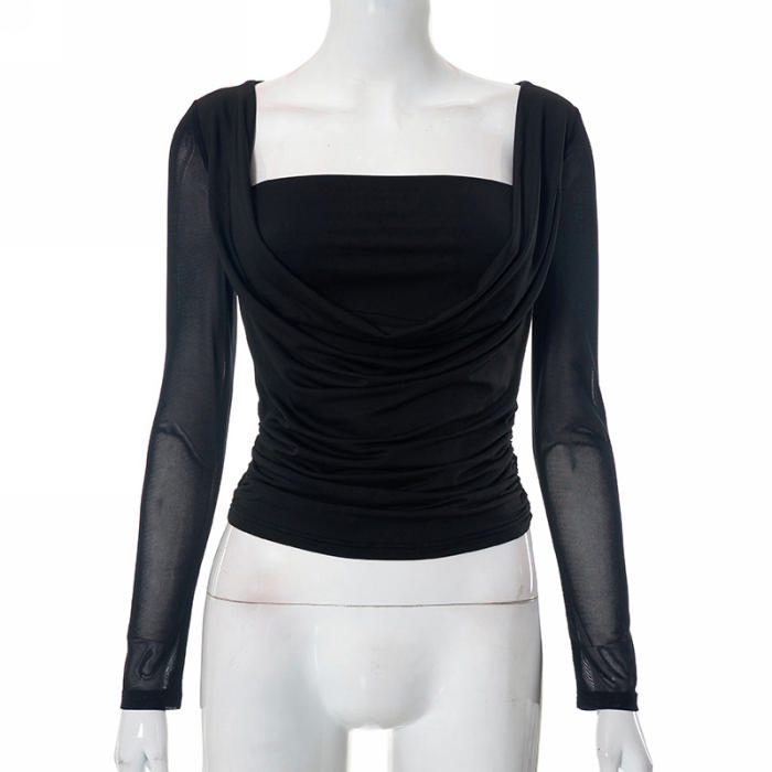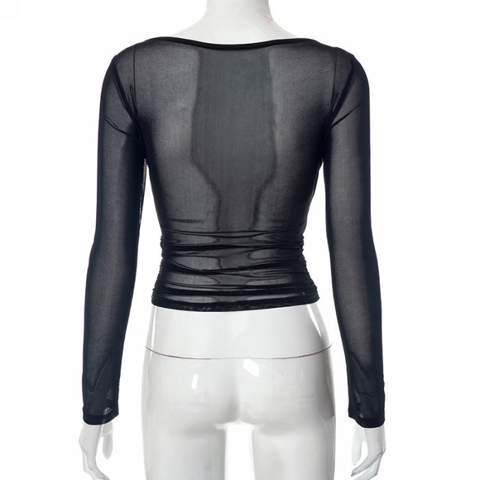 (Real Image)2023 Styles Women Sexy&Fashion Spring&Summer TikTok&Instagram Styles Black Mesh Long Sleeve TopsSKU: #CF76084-1