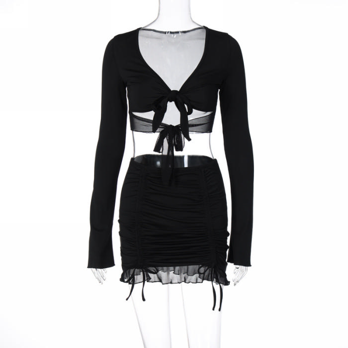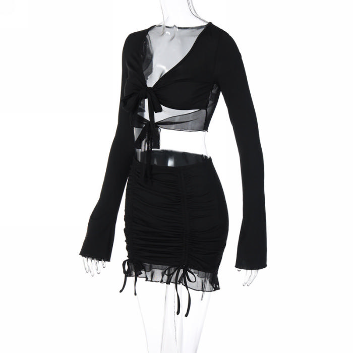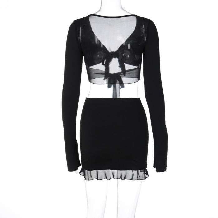 (Real Image)2023 Styles Women Sexy&Fashion Spring&Summer TikTok&Instagram Styles Black Mesh Long Sleeve Two Piece DressSKU: #CF38281-1