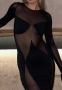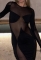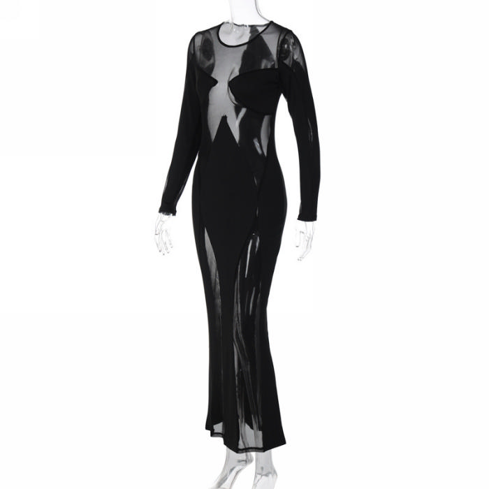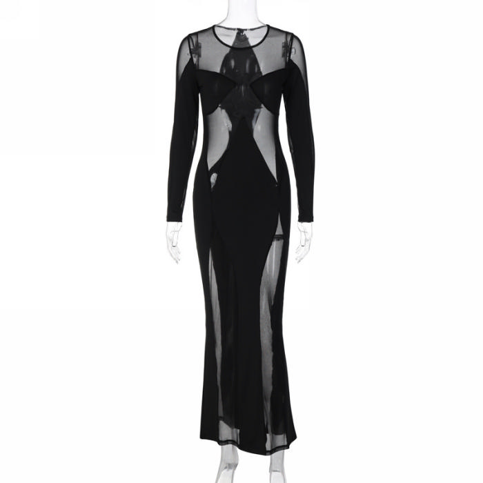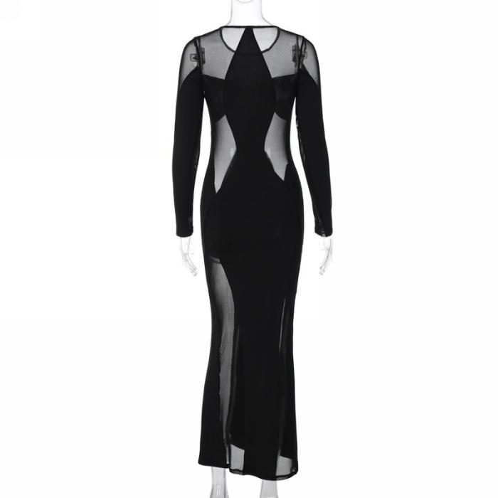 (Real Image)2023 Styles Women Sexy&Fashion Spring&Summer TikTok&Instagram Styles Black Mesh Maxi DressSKU: #CF22950-1