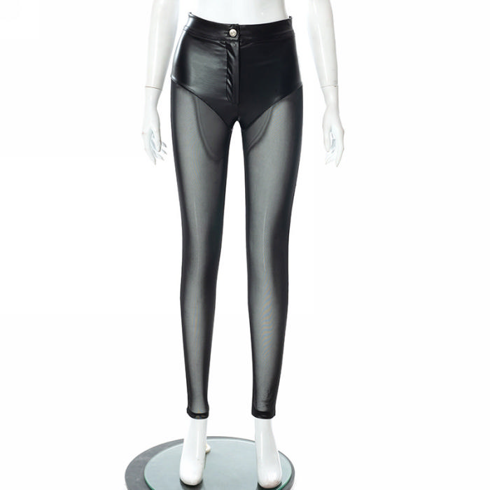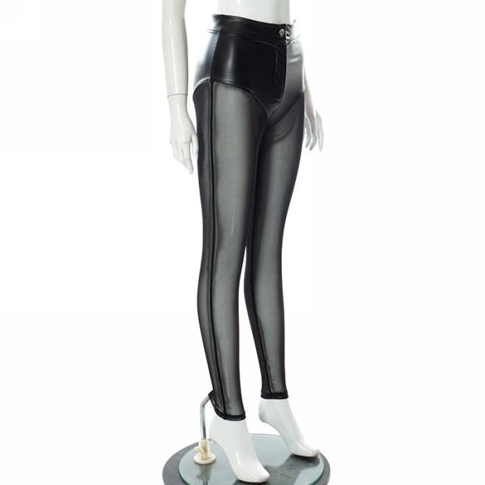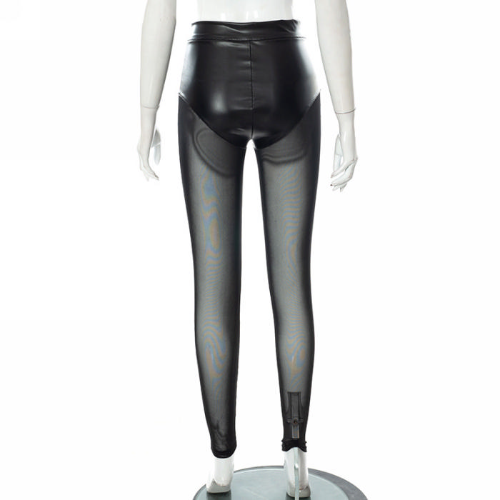 (Real Image)2023 Styles Women Sexy&Fashion Spring&Summer TikTok&Instagram Styles Black Mesh PU Long PantsSKU: #CF80030-1
