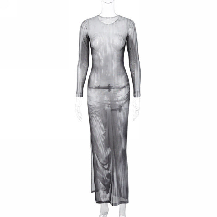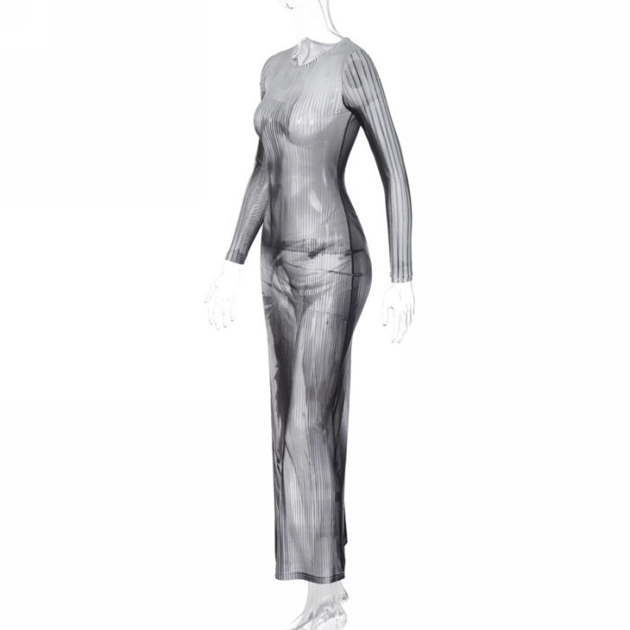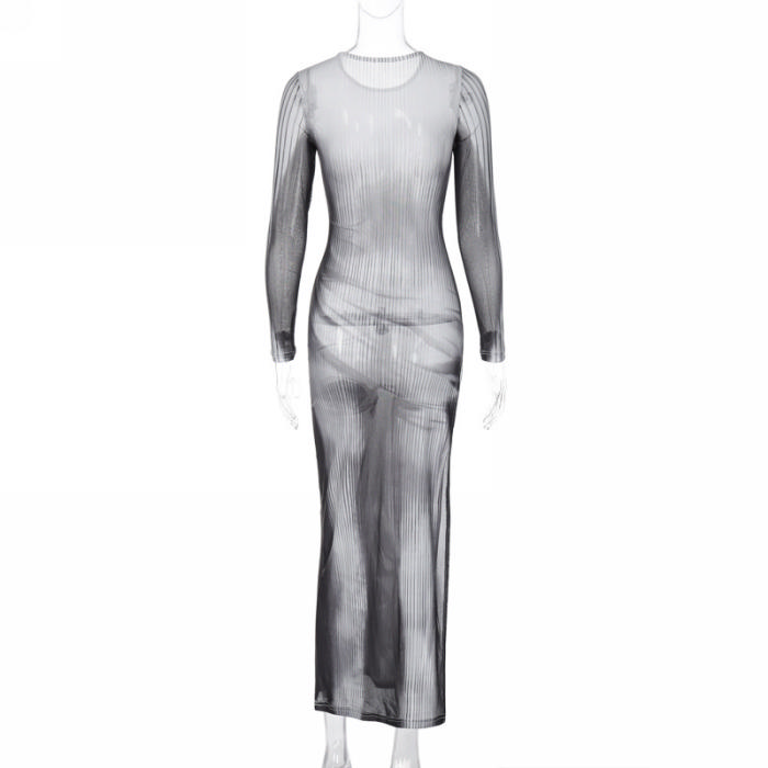 (Real Image)2023 Styles Women Sexy&Fashion Spring&Summer TikTok&Instagram Styles Black Mesh See Through Maxi DressSKU: #CF88084-1