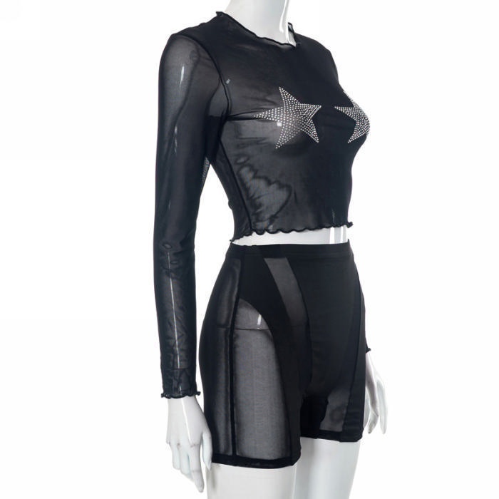 (Real Image)2023 Styles Women Sexy&Fashion Spring&Summer TikTok&Instagram Styles Black Mesh Short Two Piece SuitSKU: #CF80120-1