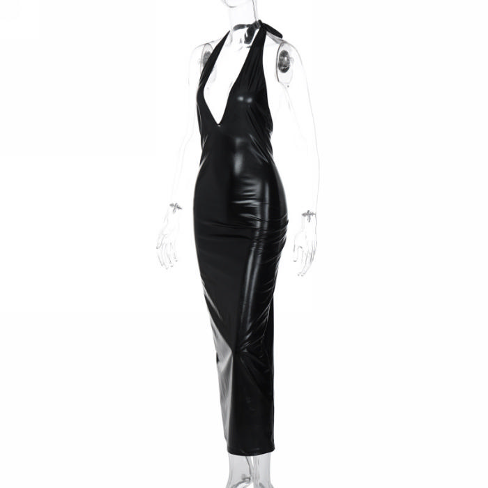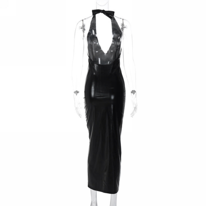 (Real Image)2023 Styles Women Sexy&Fashion Spring&Summer TikTok&Instagram Styles Black PU Backless Maxi DressSKU: #CF88042-1