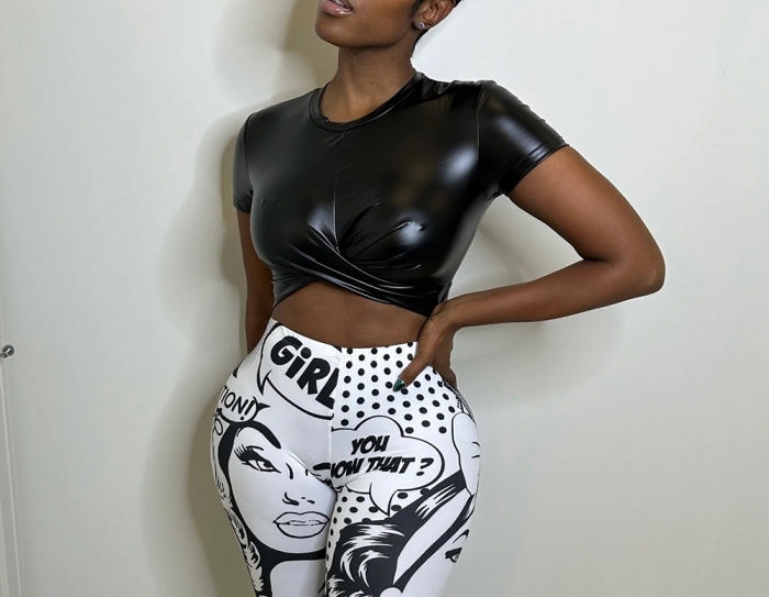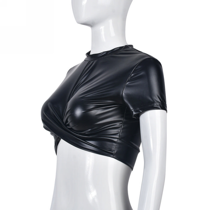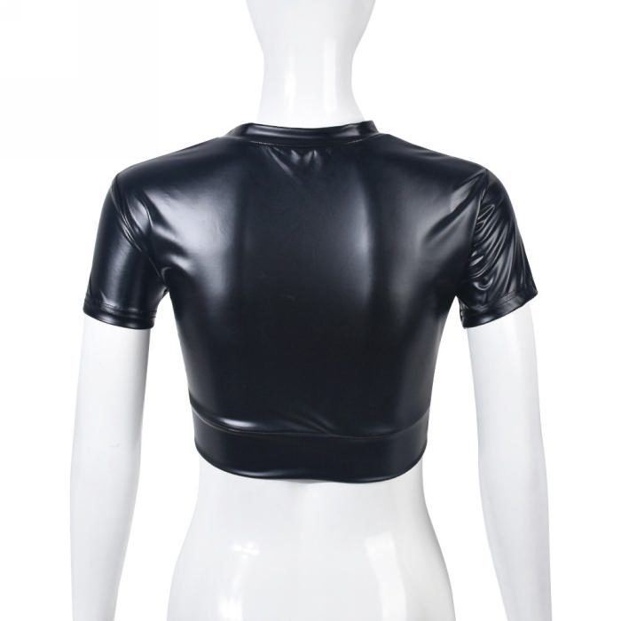 (Real Image)2023 Styles Women Sexy&Fashion Spring&Summer TikTok&Instagram Styles Black PU Tank TopsSKU: #CF59420-1