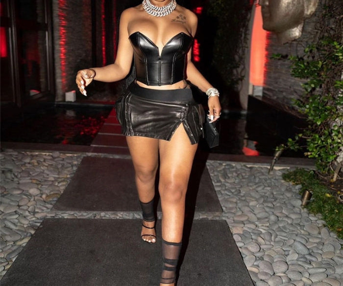 (Real Image)2023 Styles Women Sexy&Fashion Spring&Summer TikTok&Instagram Styles Black PU Two Piece DressSKU: #CF77226-1