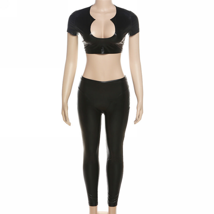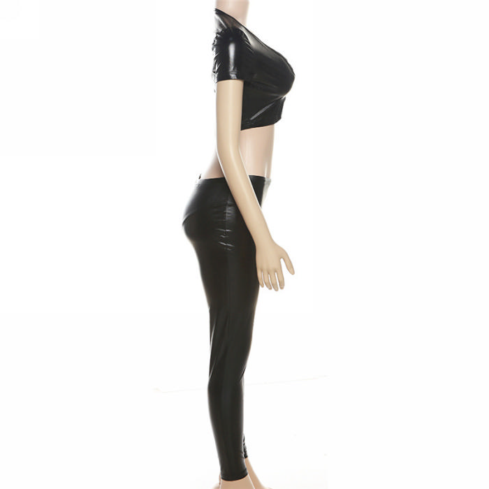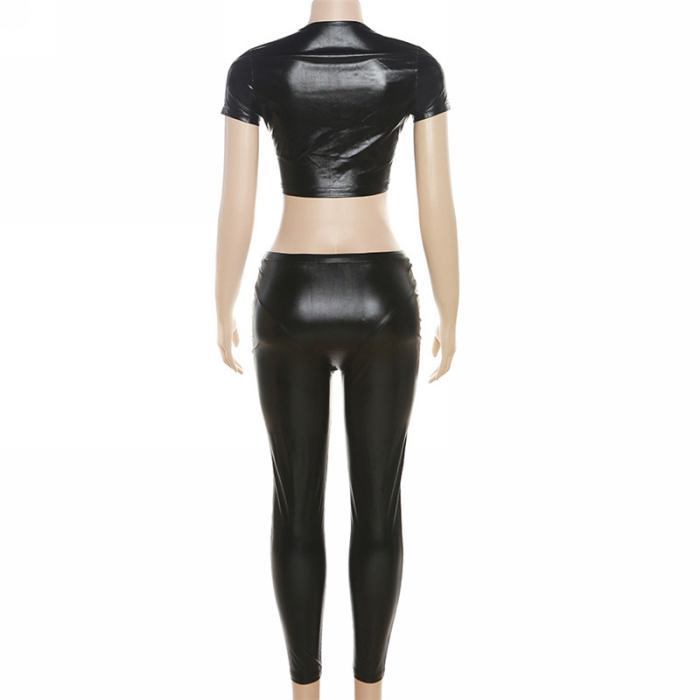 (Real Image)2023 Styles Women Sexy&Fashion Spring&Summer TikTok&Instagram Styles Black PU Two Piece SuitSKU: #CF77257-1