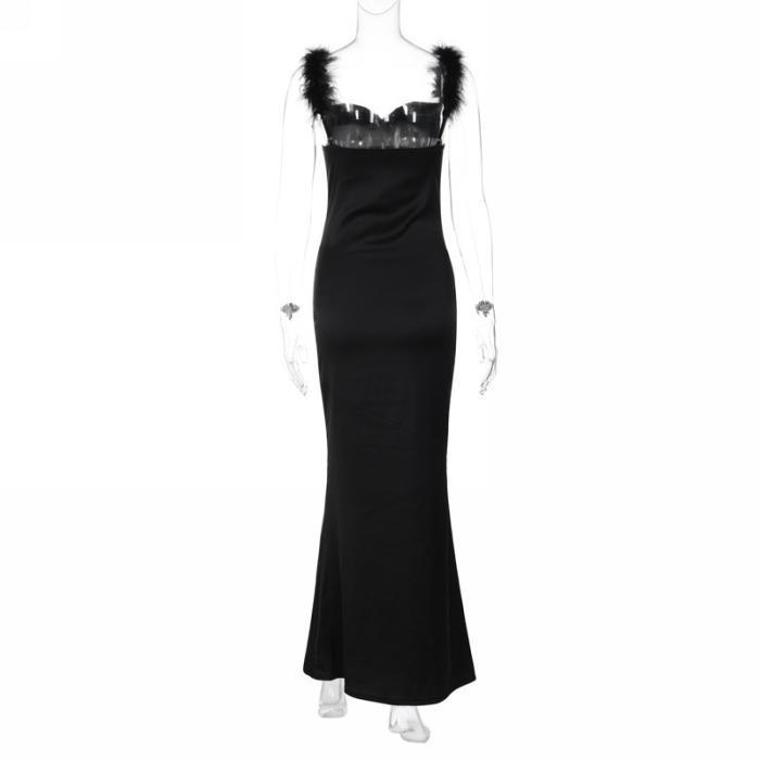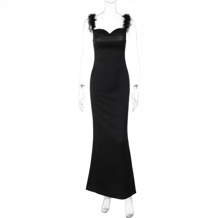 (Real Image)2023 Styles Women Sexy&Fashion Spring&Summer TikTok&Instagram Styles Black Strap Maxi DressSKU: #CF22970-1