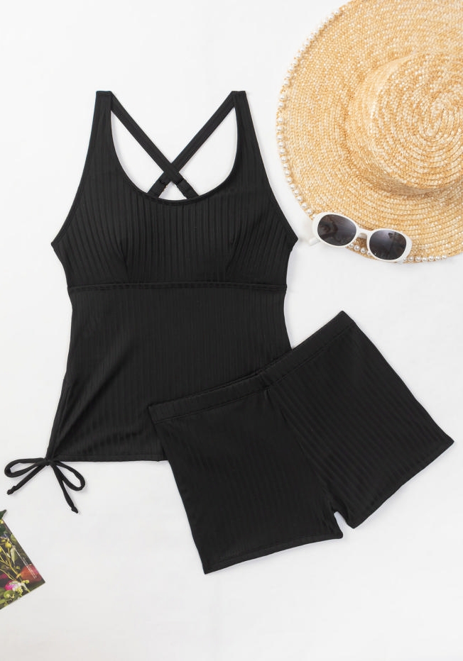 (Real Image)2023 Styles Women Sexy&Fashion Spring&Summer TikTok&Instagram Styles Black Tankinis SetSKU: #CF56070-1
